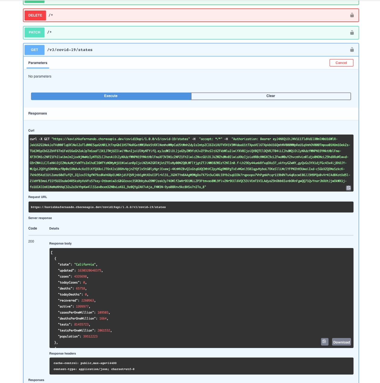 You will be able to see the COVID-19 data for all the states of the USA as the response from the API.