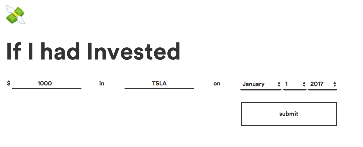 You can use the site to see how much you would have made investing in Facebook, Tesla, Apple, Snapchat, Facebook, GoPro, and many other stocks.