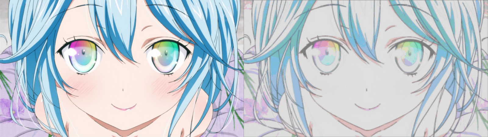 In high-profile manga, because of the details of manga distribution, it is often the case that multiple coloring & shading styles will be used: full-color with outlines for the first few pages, followed by a few pages of less distinct watercolor work, followed by outlines + smooth shading for most of the remainder of the tankoban & unshaded outlines for omake and sketches in the back. I decided to write filters for each of these stages.