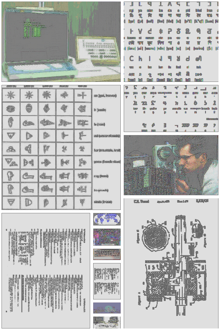 Once an image had its target position and size, I shrank it to that size, applied the appropriate filter chain, drew a black box around it, then shrank it again and placed it on a white background — producing gutters through the white border aorund each frame.