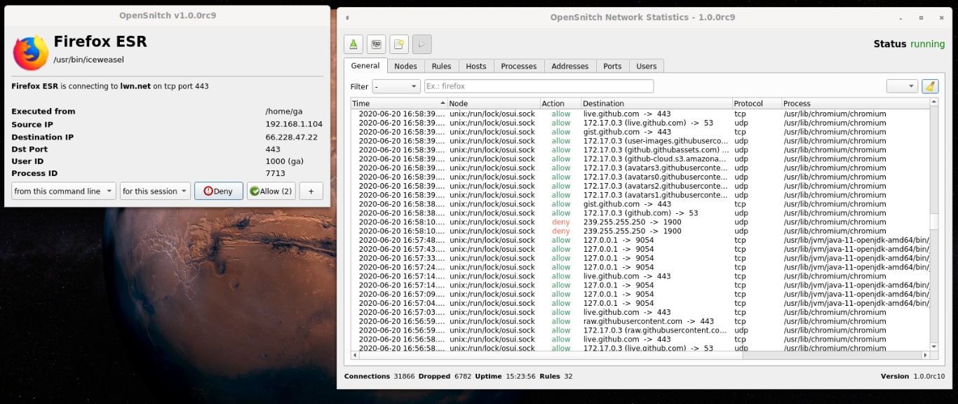OpenSnitch can be a powerful tool against government surveillance or spyware, as it allows users to identify and block unauthorized data transmissions. It offers a layer of protection by ensuring that no application sends data without explicit permission. As free software, it’s primarily funded through community donations, which can be made via the project’s GitHub page. Users can also contribute by