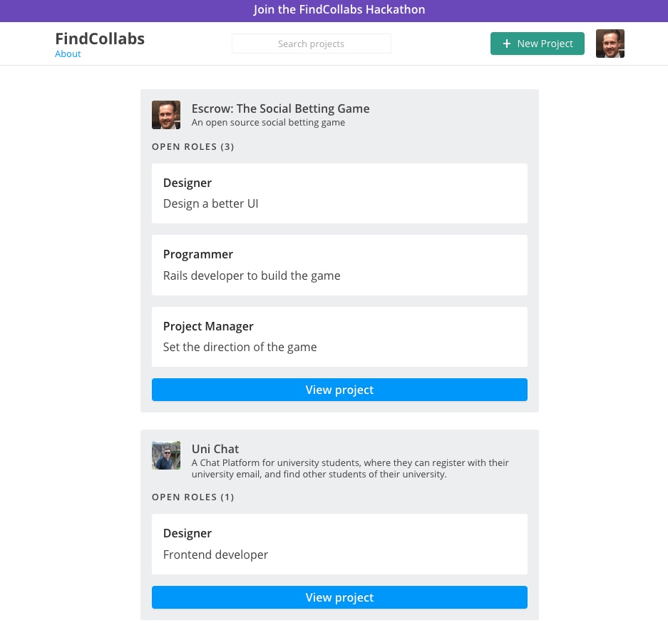 On FindCollabs, you can post new projects and old projects. You can post a rough idea or a detailed product spec.