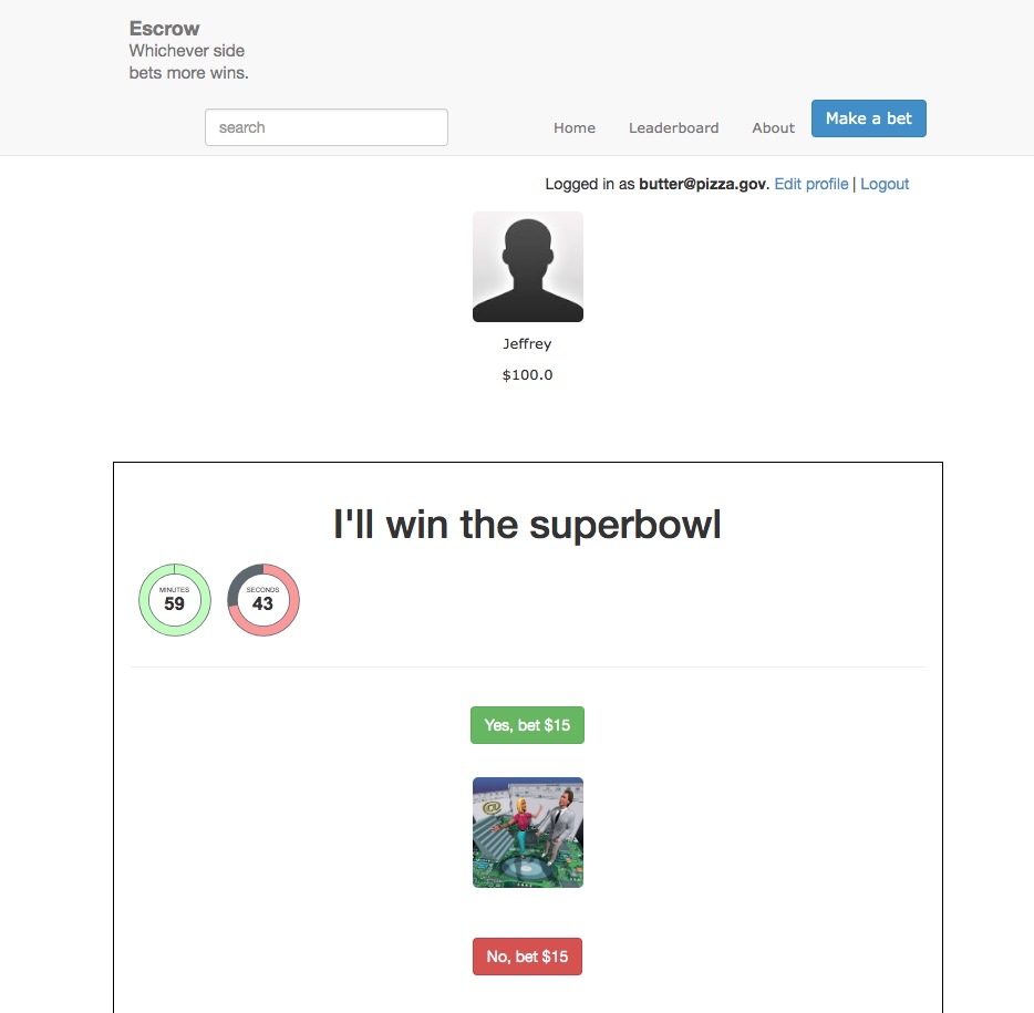 This is Escrow, a social betting game I invented. It’s not the prettiest game in the world, but it has some cool ideas. Maybe other people will want to contribute to it.