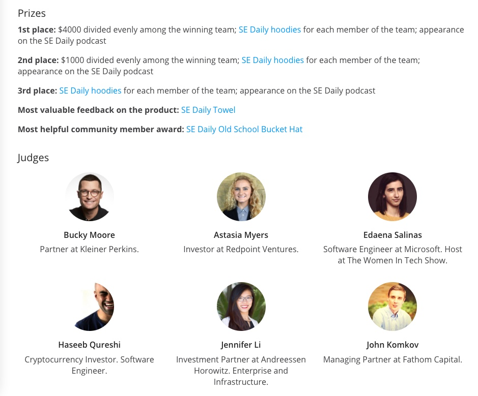 The judges are investors, artists, and engineers. They understand the creative process. Entrees to the hackathon will be judged based on vision, execution, creativity, and teamwork.