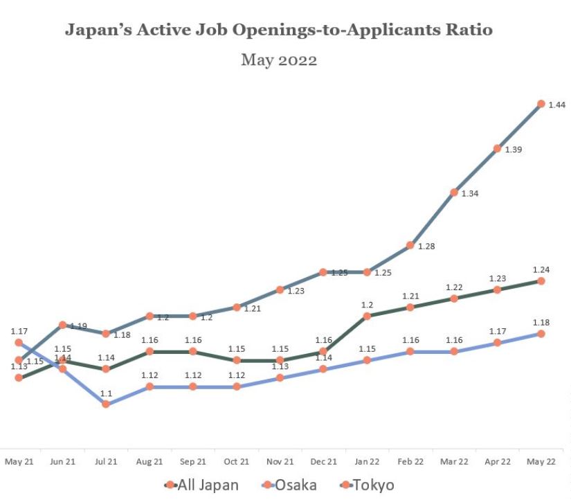 Among developed countries, Japan has one of the least unemployment rates. As per the Japanese government’s figures for May 2022, job vacancies in Tokyo exceeded the number of job seekers by 44% in May 2022. During that month, the job-openings-to-applicants ratio is 1.44 jobs for every job seeker in Tokyo, 1.18 in Osaka, and 1.24 nationwide. However, the ratio gets far worse when it comes to job openings for bilinguals with Japanese and English-speaking proficiency, and that makes hiring in Japan quite challenging.