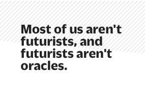Most of us aren’t futurists, and futurists aren’t oracles. They simply try and make some sense of what’s coming — not hard and fast predictions, just possibilities. The most accurate forecasts we’re able to make are often necessarily broad. What’s always clear is simply that technology will only burrow deeper into our world and organizations, disrupting the way we do things and throwing more threats and opportunities in our way. How it will is more of an open question by comparison.