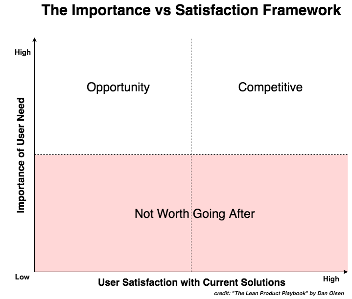 The Importance vs Satisfaction Framework | Credit: “The Lean Product Playbook” by Dan Olsen