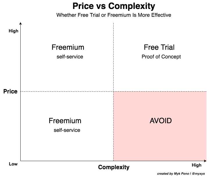 It’s important to understand the buying process of your target companies and personas. In many cases free trials and freemium speak more directly to end users of your product than to the decision maker or budget owner. In other words, free trials and freemium are more appealing to end users since they will be the ones to use your product on a daily (hopefully) basis.