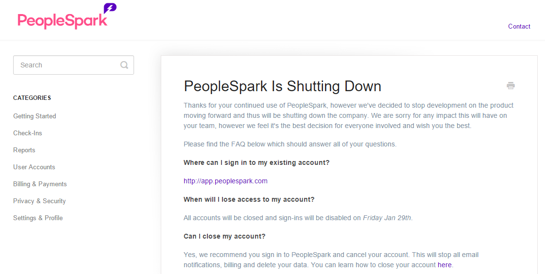 Today, I have just heard that only three months later, PeopleSpark has announced it is closing down, effective immediately.