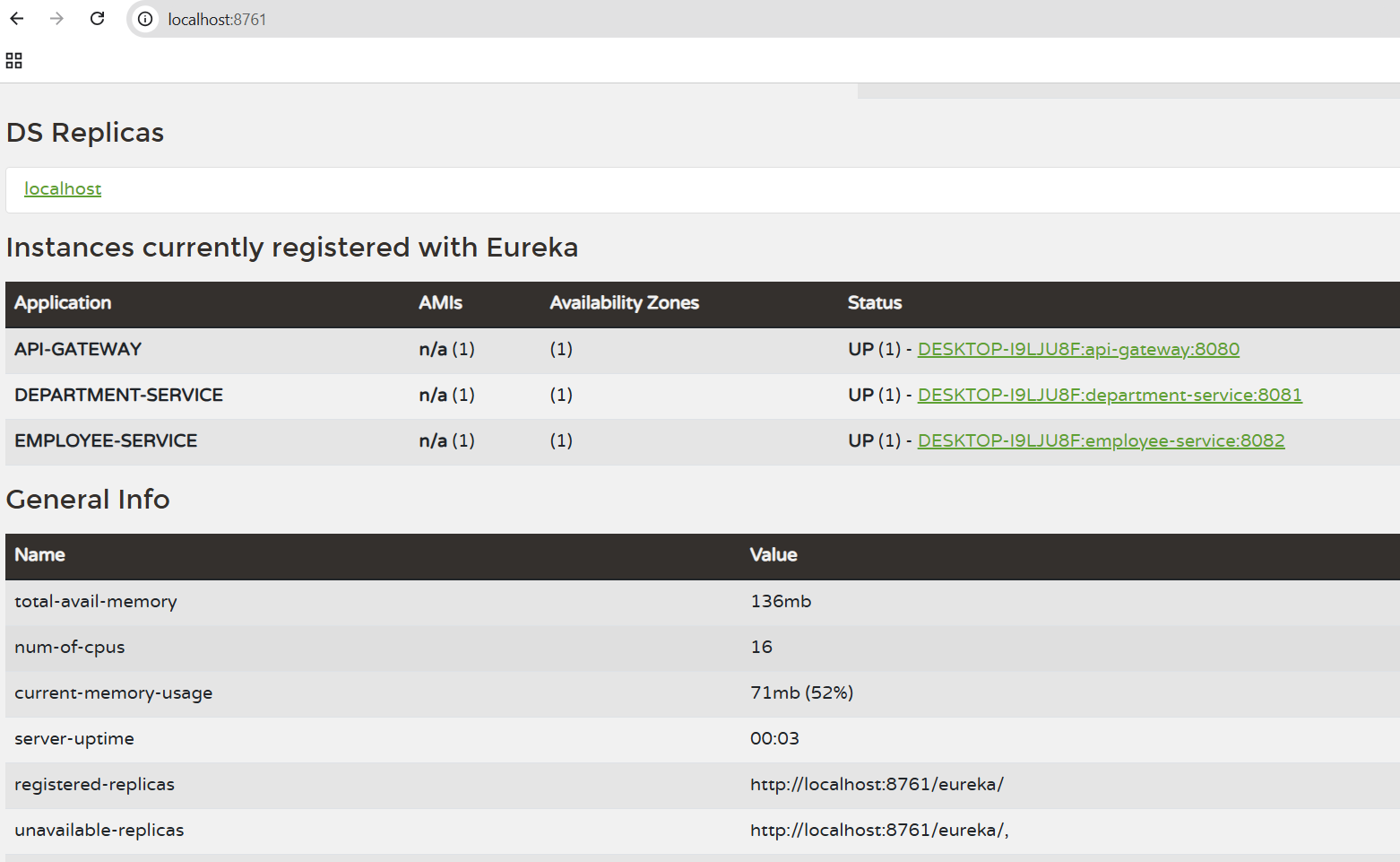Check the Eureka dashboard: