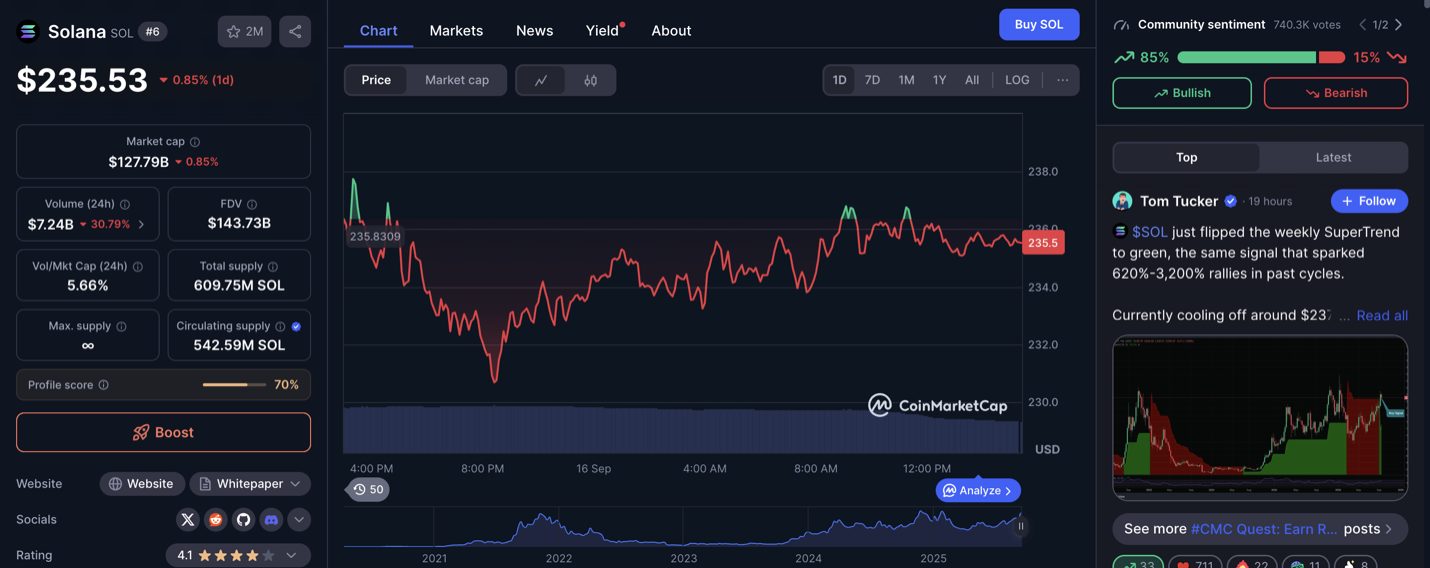 Solana (SOL) trades near $240, and analysts view the latest move as a short term pullback. Chart signals highlight $190 as key resistance, while long term outlooks indicate that if momentum continues, SOL could aim for $1,000.