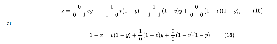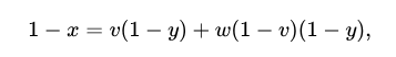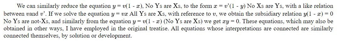 Let us take, in illustration of this principle, the equation y=vx, (All Ys are Xs), and seek the value of 1 - x, the class not-X.