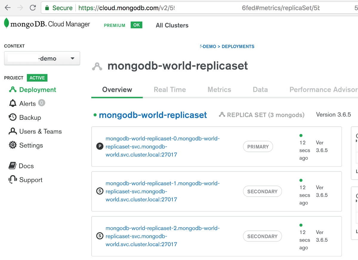 Finally, if you check the Ops Manager projects, then you would see a MongoDB deployment with the above Pods is created and the Automation and Monitoring is turned on as well.