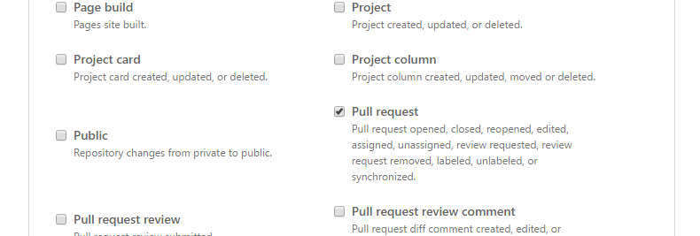 Choose to select individual events and select only the pull request event