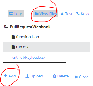 A neat thing is that the queue item can be changed to custom class and then it will automatically serialize and deserialize the JSON string.So lets create an class and to keep it nice and tidy we’ll add it to it’s own file.Hit “View Files”->”+Add”, then type in the filename hit enter.