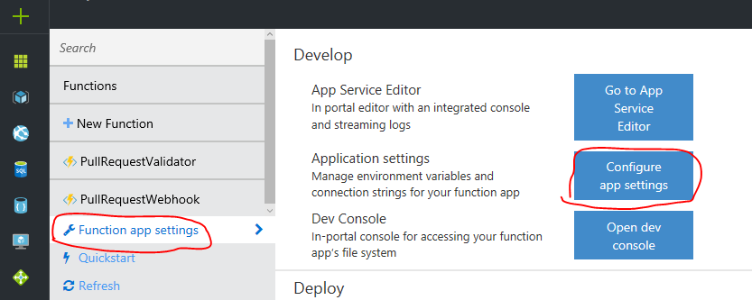 We don’t want to store our token in our source code, fortunately Azure Functions just as the other Azure app services provide means to store app settings.