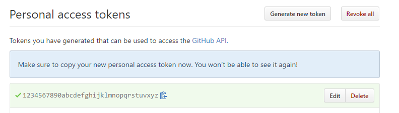 Hit “Generate token” and you’ll be presented with the newly generated token.