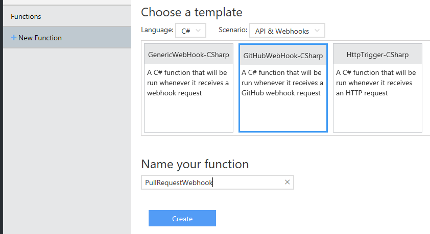 Azure Functions has a ready template to quickly get started with a GitHub webhooks.