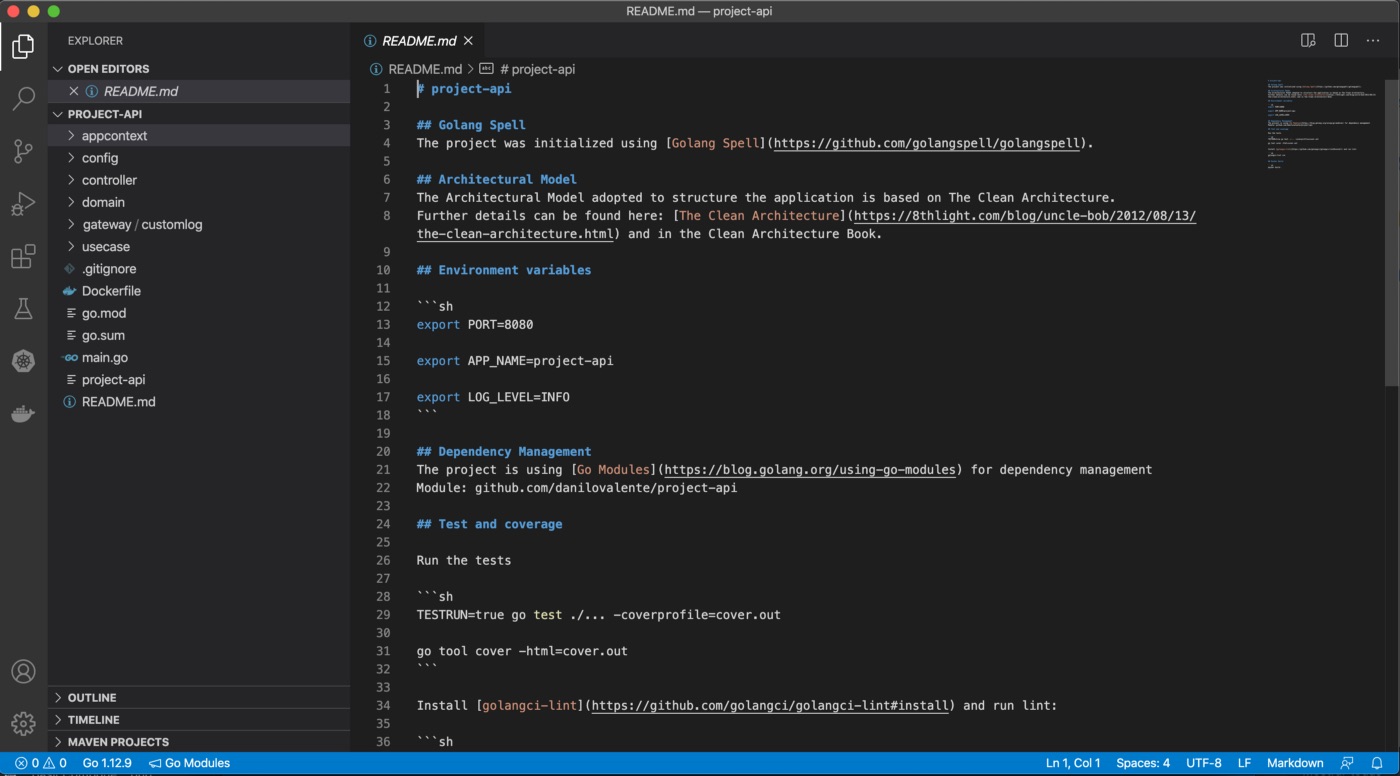 In the next sections will be presented how the Clean Architecture was used as basis to structure the projects created with the Golang Spell platform.