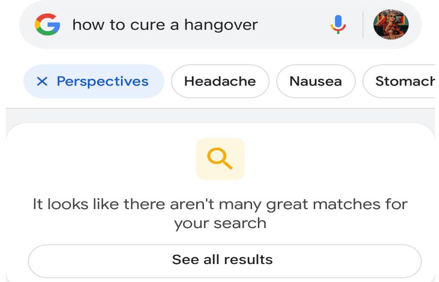 You can access this content (i.e., Perspectives filter) through a dedicated Perspectives section that may appear on the results page. By tapping the “See more” link, you can access the full page of Perspectives content that you would by using the filter.