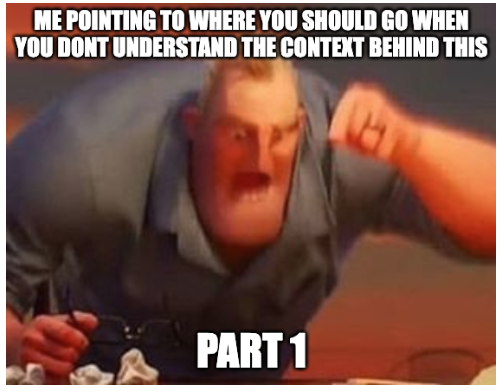The point was, I had a new idea, one that I could expand on, which is why you are seeing a part 2 of this mini series. And if I have another crazy idea, you would see a part 3. But that's for next time, sometime in the near or far future.