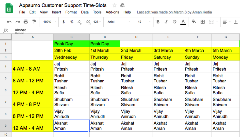We figured out a way to provide support round the clock by dividing our small team of 13 into 6 groups. As a result, 2 people were on support duty for 4 hours each day.