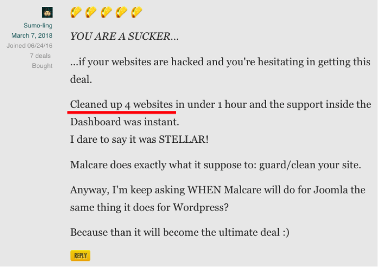 Early adopters of the deal began using MalCare instantly. Some had hacked websites and they were eager to clean those site and restore it back to normal.