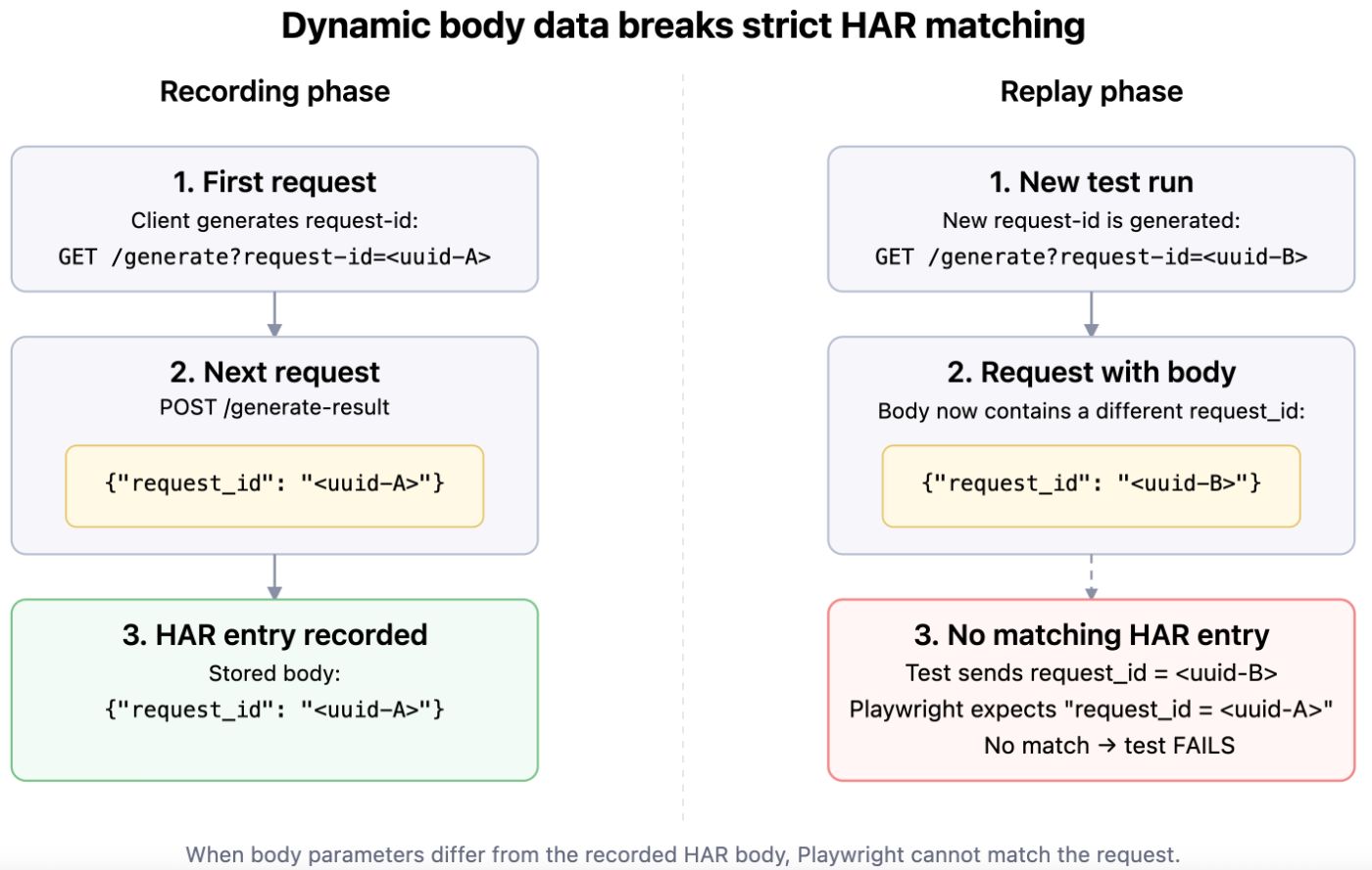 What we did: We taught Playwright to find the correct HAR entry even when query/body values change and prevented reusing entities with dynamic identifiers.