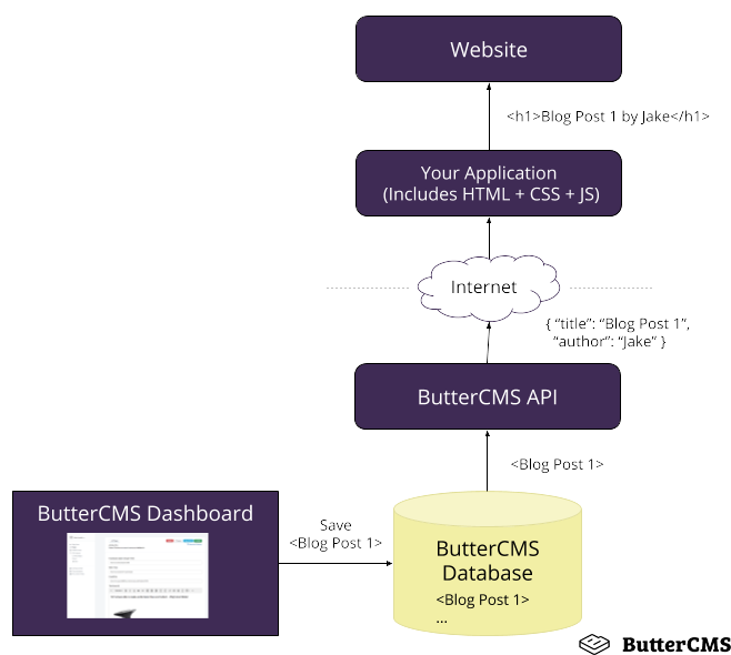 This is a very different approach than something like WordPress which keeps you contained its system (remember that tightly coupled frontend and backend) where everything is in one place. Let’s take a closer look at how a headless CMS works by looking at ButterCMS.