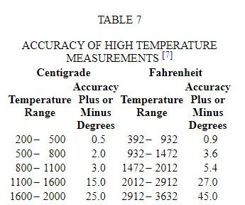 Table 7 gives the degree of accuracy of high temperature measurements.