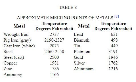 The approximate melting points of certain metals that may be used for determinations of this nature are given in Table 8 .
