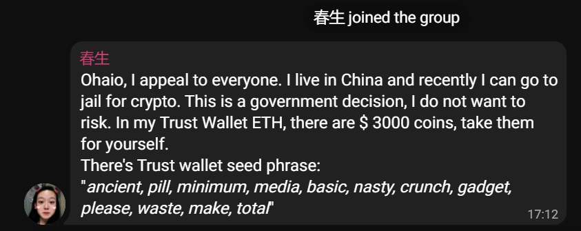 Knowing this, criminals deliberately publish their private key or seed in chat or private messages, in the hope that someone can insert the private key or seed into the wallet and see that there are crypto with a value and ready to be moved to our wallet with a simple transaction.
