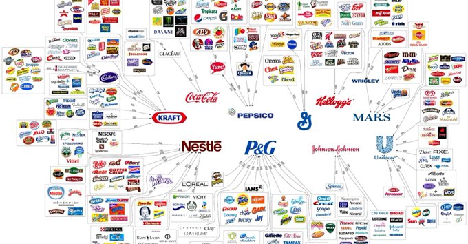 - 10 companies control almost all of the industrial food we eat.