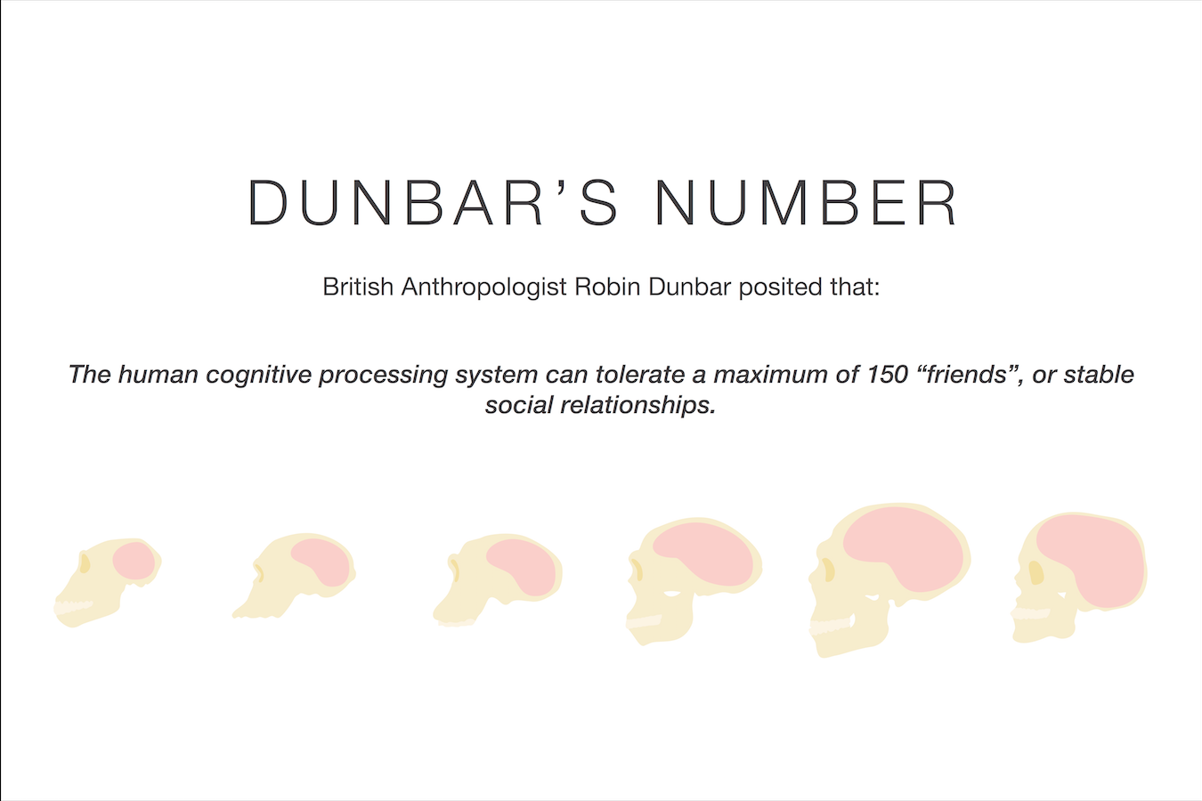 Robin Dunbar was a British Anthropologist who spent years studying the average social group size and brain function of humans & primates throughout history.