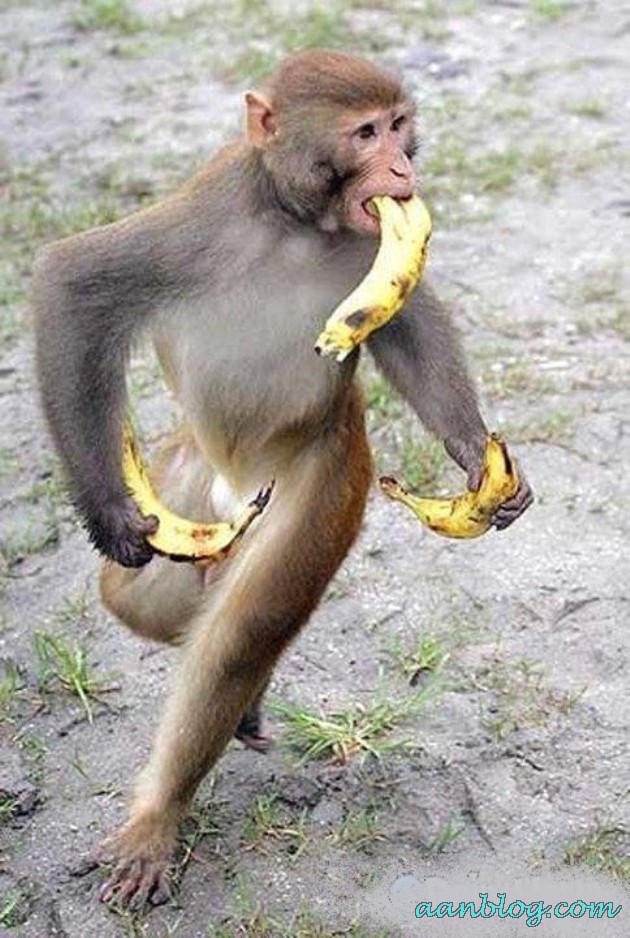 Monkey who just stole a banana…and is on the run…yep…