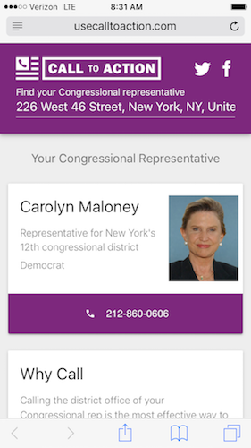 Call To Action is the fastest and easiest way to contact your Congressional reps. You can use it on your Android or iPhone right now: