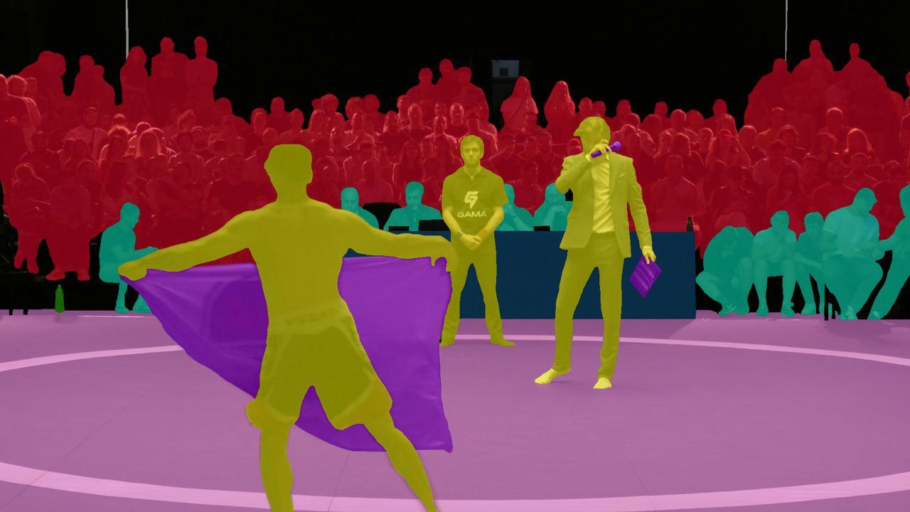 The main difficulty is that the venues can vary. In one case, it will be a boxing ring with ropes, and in another case, it will be an arena with mesh walls, each of which creates difficulties for segmentation.