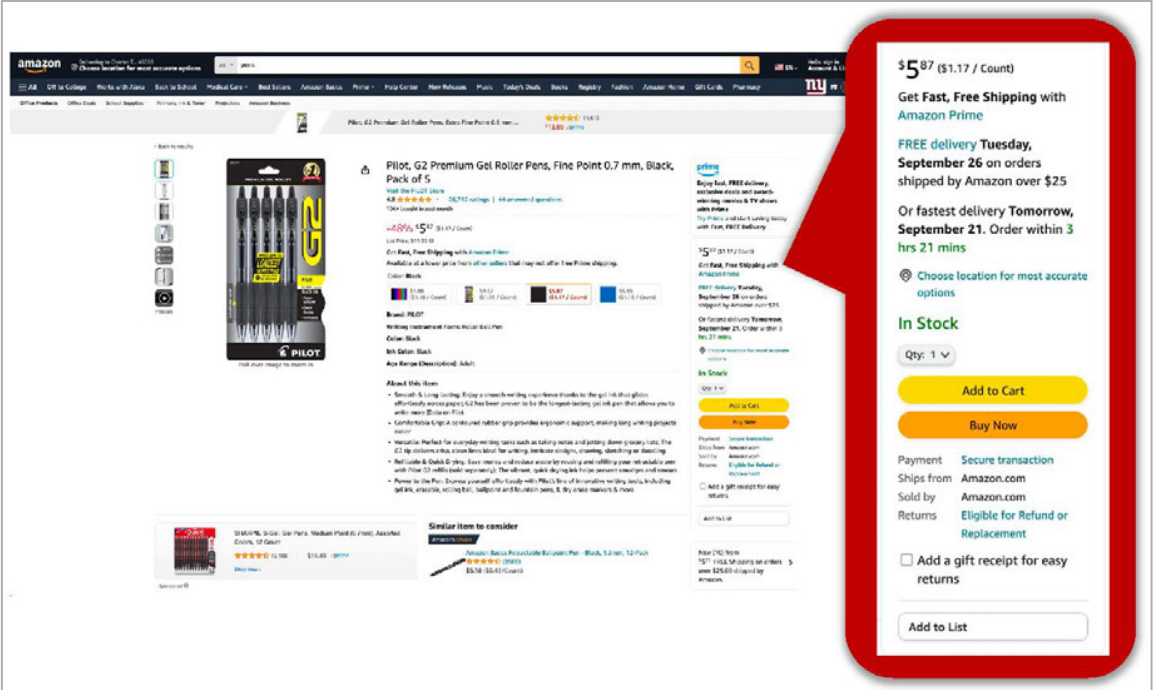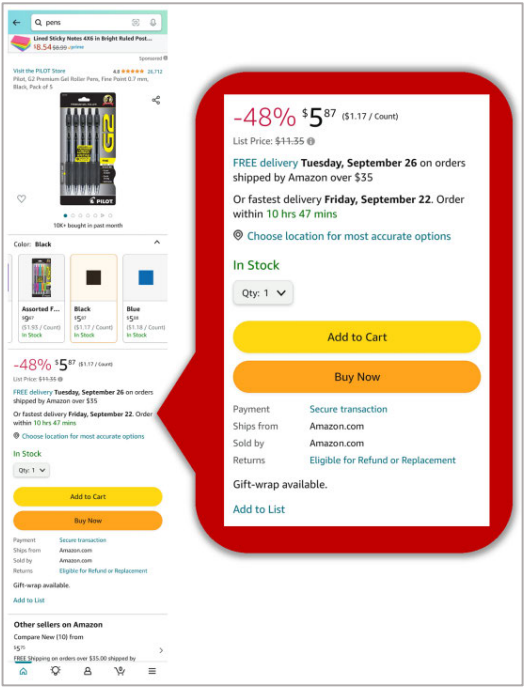 Figure 4a. Product Detail Page with Buy Box Enlarged in Red, Desktop Browser.