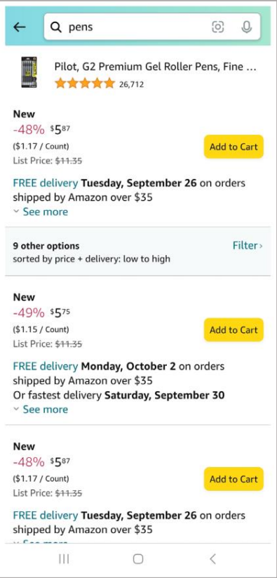 Figure 5b. All Offer Display After Clicking “Other Sellers On Amazon,” Mobile App.