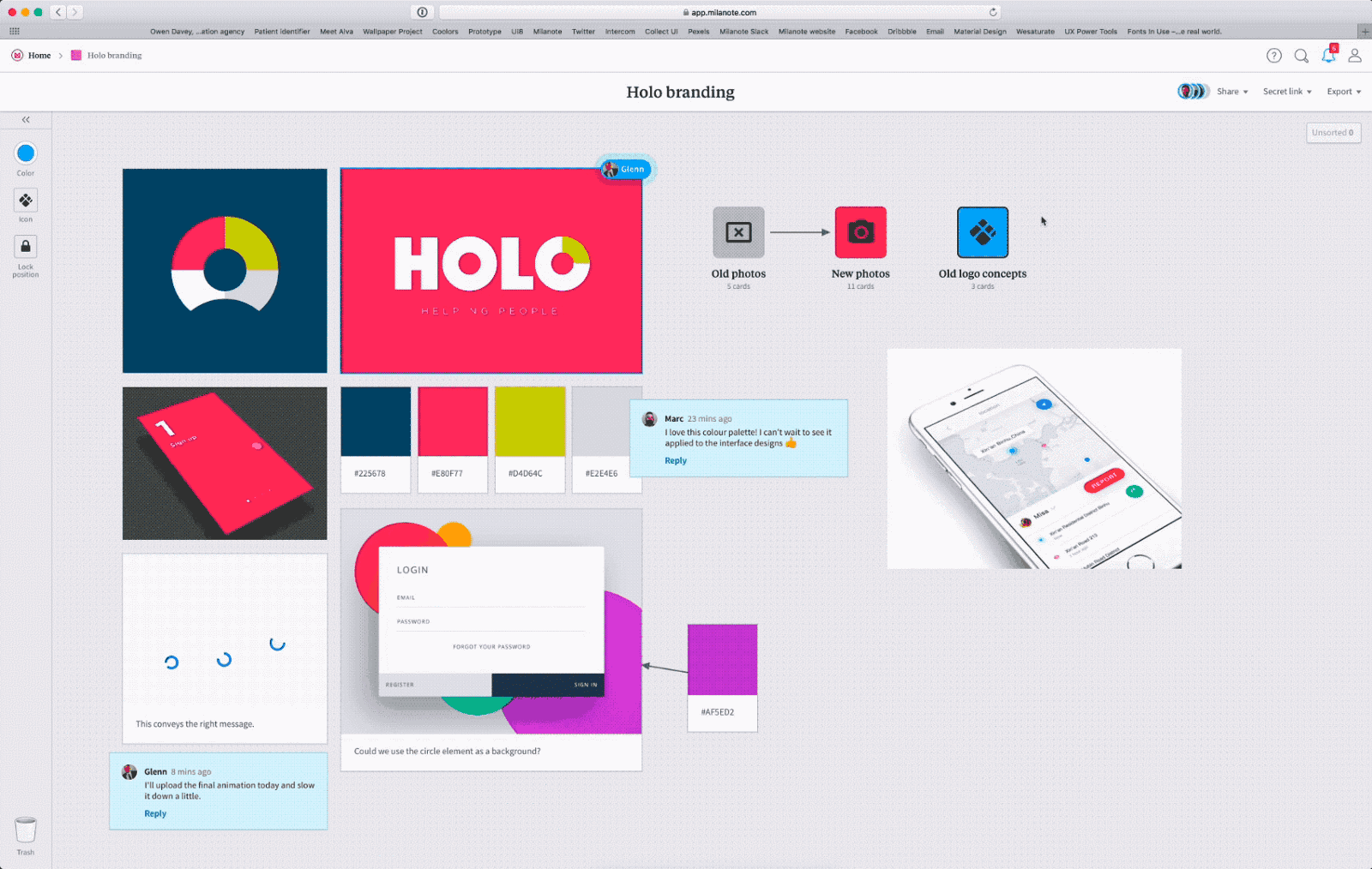 Collaborating on a branding project in Milanote