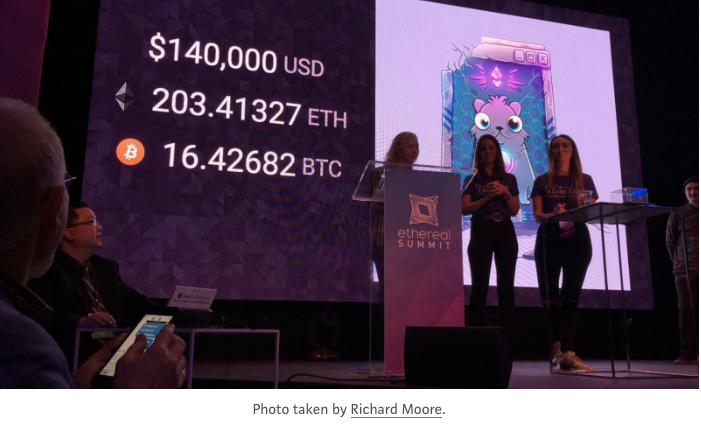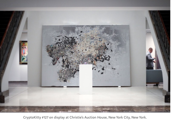 Cryptokitties that was developed at ETHWaterloo hackathon by four Pokemon enthusiast crypto developers, have now turned into a $12M separate business entity backed by Union Square Ventures and Andreessen Horowitz. A cat number 127 with pearl gem physical attributes of third order mutation has fetched $140,000 at Christie’s auction last May outbidding crypto hedge fund manager Mike Novogratz.