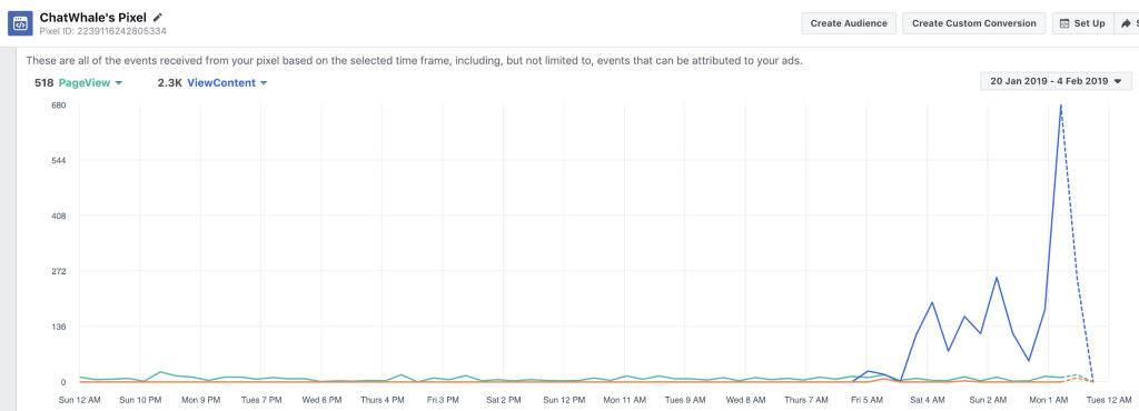 After adding the email pixel, our audience growth spiked massively, and dwarfed our previous audience on the graph.