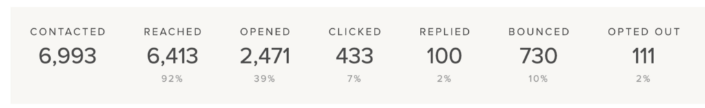 Almost 2,000 people in our test cohort were intrigued enough by the subject (is {{company_name}} growing fast enough?) to open, but for whatever reason they didn’t click the CTA in the email.