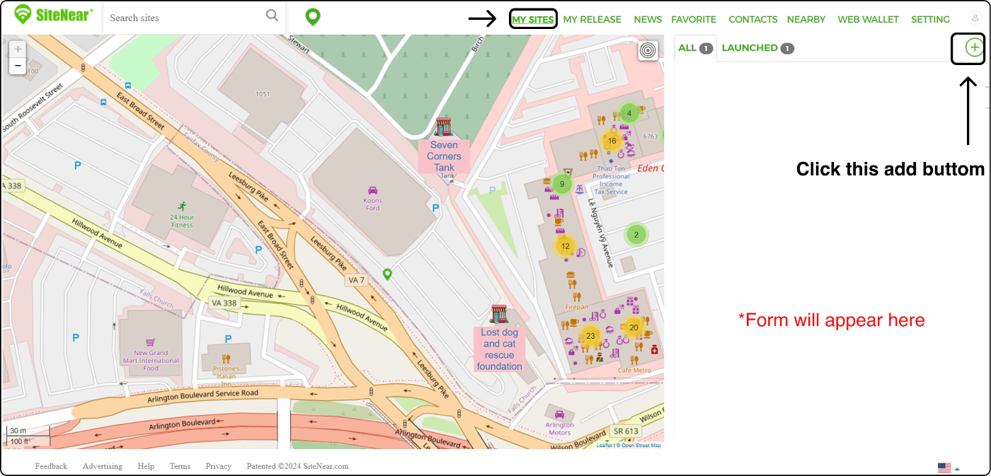 I simply clicked the “+” (Add Site) button in the top right corner :