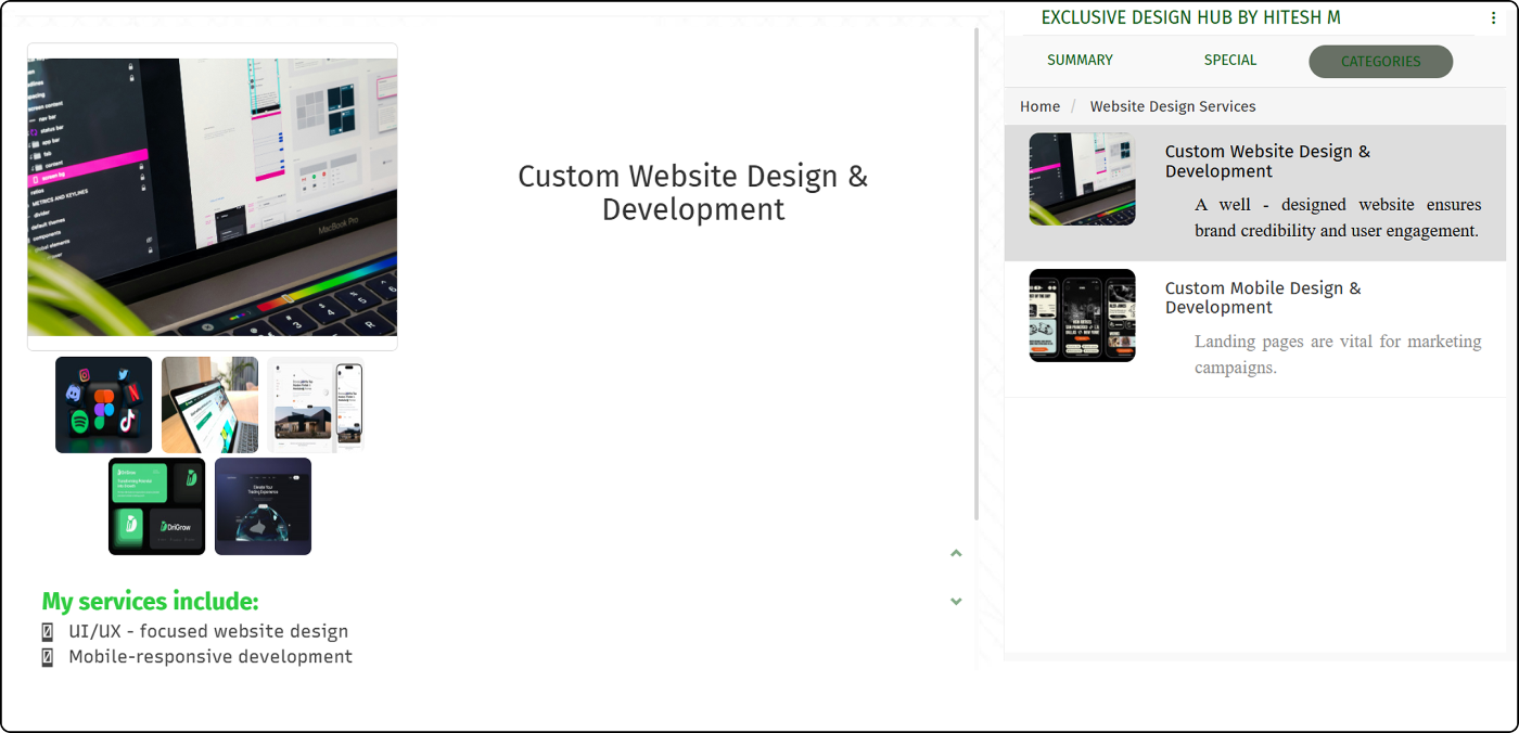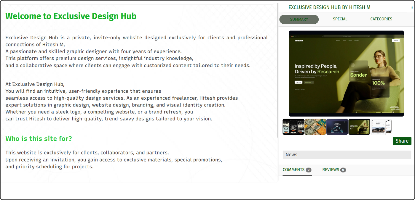Site Name: “Exclusive Design Hub by Hitesh M”.