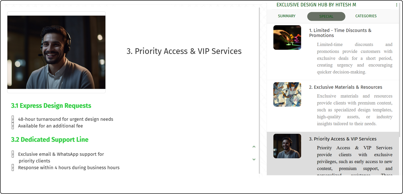 My Exclusive Design Hub is now the central place where clients can access top-tier designs and exclusive resources from my services. It looks professional and works perfectly—all without writing a single line of code.