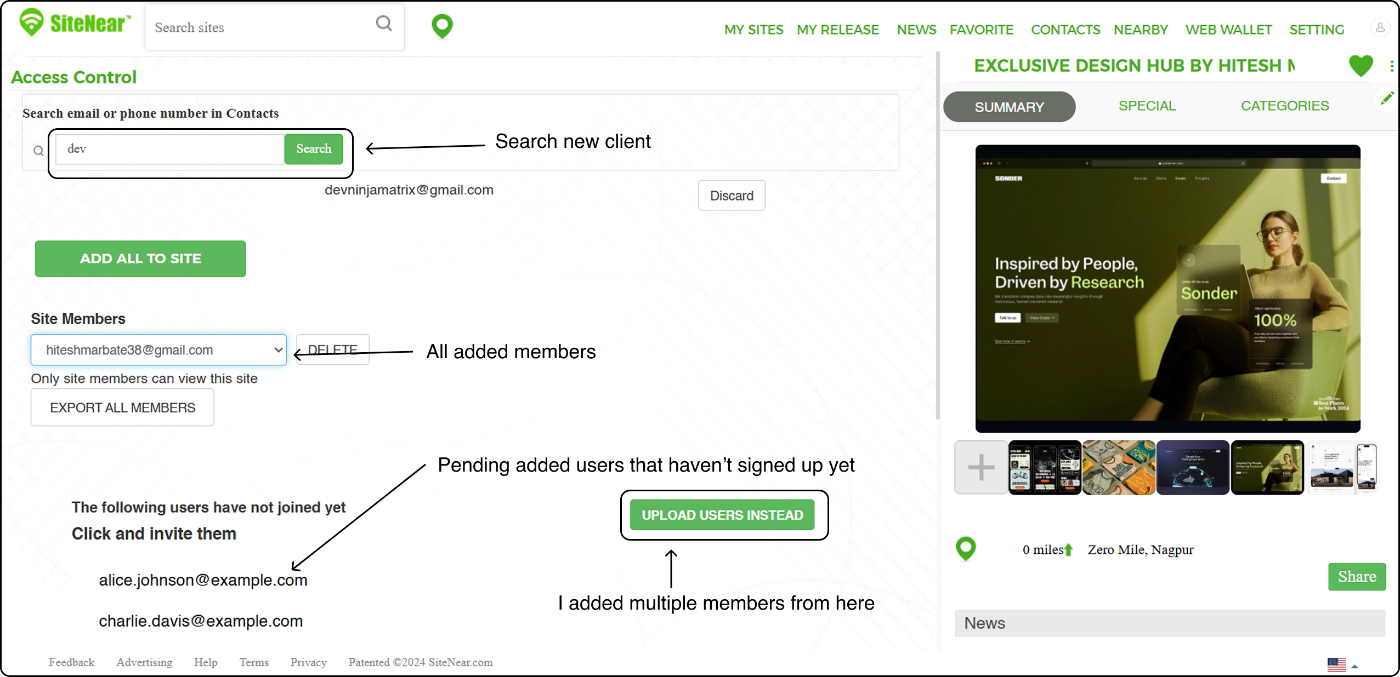 Then I found sitenear.com—and, wow, what a game-changer! It gave me exactly what I needed: a simple way to build a professional-looking client space without any coding. What once seemed impossible suddenly became doable in just a few hours.