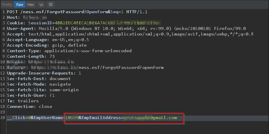 Pre-authentication: Discovered an endpoint to reset the password of an employee, where a valid email address and employee ID are required.