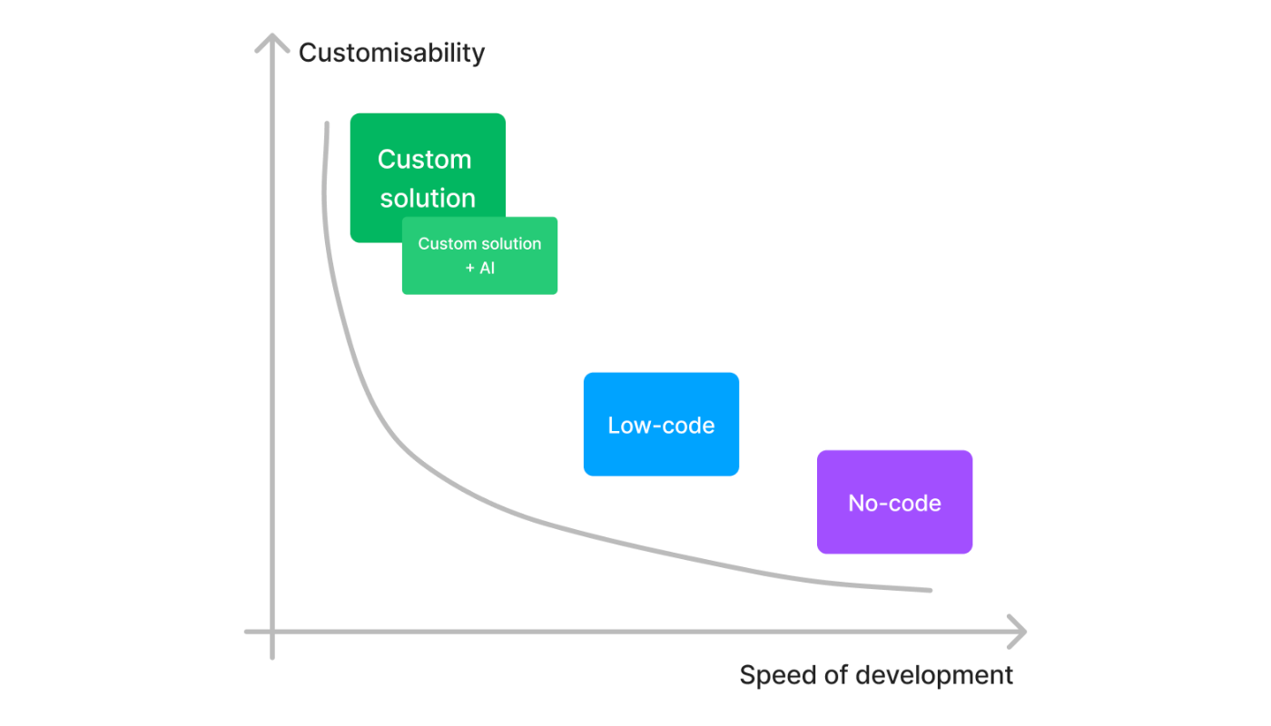 I have tried many no-code platforms, and they gave me good speed in the beginning, but I always had a lack of customization and simplicity of updating as soon as the project grew. At the same time, the fully custom solution I have developed for my clients is something I'm not able to support as well because the amount of custom functionality the product eventually introduce is huge, you need a team to manage this, which is ok, but it creates bigger running costs.