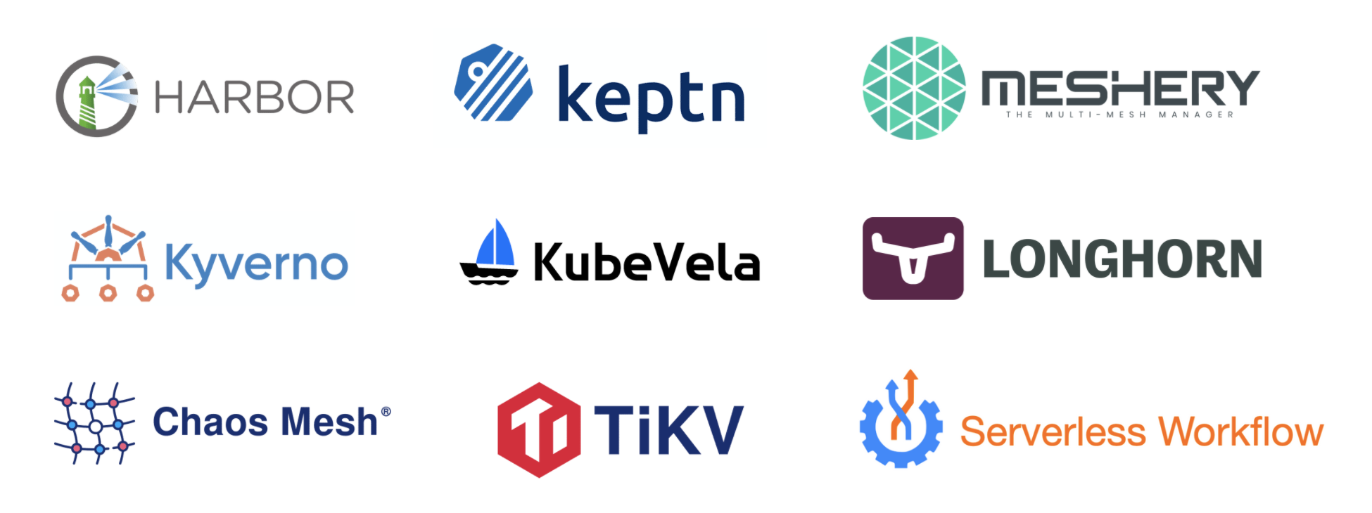 Harbor Keptn Meshery Kyverno KubeVela Longhorn Chaos Mesh TiKV Serverless Workflow